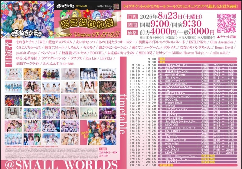 Title | まねきケチャPresents『 招き招かれ祭 @スモールワールズ ~夏休みスペシャルLIVE!!! 』supported by IDOL CONTENT EXPO |